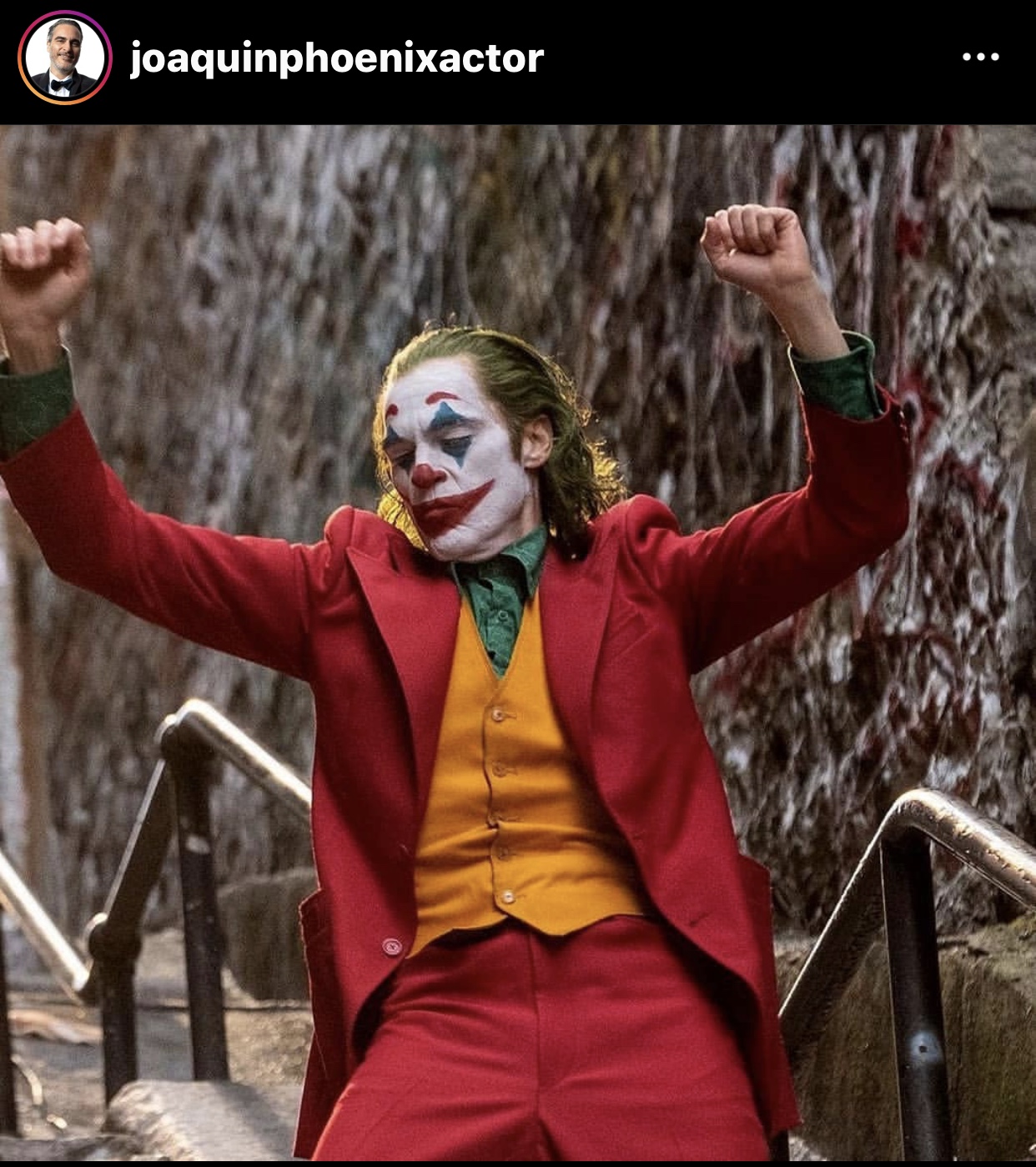 今天的內容是個我忠實的聽眾希望我分享的,如果你有希望我討論的議題,請不要客氣趕快跟我說。不知道你有沒有看過『小丑』這部電影?這邊我快速幫你review一下電影內容,主角是一個以小丑為職業的人,就是典型的臉要塗白、戴著紅色圓形的鼻子,頭髮很捲、嘴巴要畫成超級上揚的大微笑,講一講發現根本就是在說麥當勞叔叔。這個主角小丑跟他媽媽相依為命,生活很苦,但他很愛他的工作,活在蝙蝠俠的背景高譚市這座大城市裡,自己的身體狀況、經濟條件與生活環境都不好,又在工作中遭遇了許多屁孩的霸凌、老闆的不諒解與開除、被同事假裝關懷但其實背後陰他,就是個社會邊緣的人、沒人看見他、沒人在意他的死活。最後他調閱媽媽的病歷資料,才發現他最信任的媽媽其實從前就有精神病,且自己是媽媽領養,但小時候媽媽卻任由男友虐待他造成他現在的很多身體問題,他的性格開始扭曲,而後精神近乎崩潰,開始走向自我毀滅、發狂的殺人,而且發狂的他卻獲得了許多活在社會邊緣群眾的眼光與支持。所以今天,我想跟你分享,把小丑這個瘋狂殺人犯角色演的淋漓盡致的演員瓦昆菲尼克斯 (Joaquin Phoenix),其實他本人是個長期推動動物保護的素食主義者!(圖片來源:瓦昆菲尼克斯 (Joaquin Phoenix) IG)